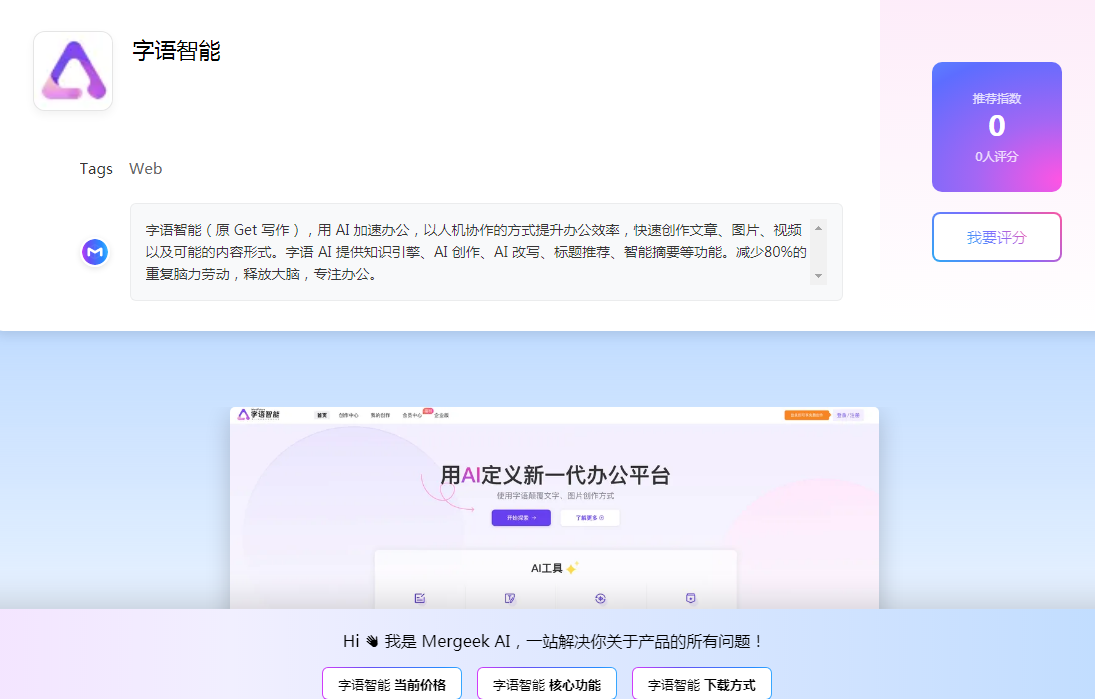 基于高质量的ai技术进行打造,在办公以及生产等多个领域中起着至关重要的作用,还提升了办公的工作效率,比如有ai创作、ai配图以及ppt等等。其中涵盖丰富的文案模板,用户可在多样化的模板中挑选合适自己的,并开展一键创作的操作方式。此软件适用于多种不同的办公场景,只要输入关键字就可快速生成。
