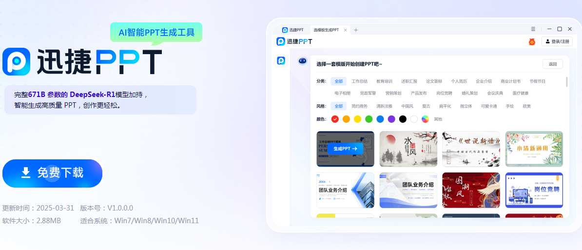 基于先进的ai技术进行创作,作为功能强大的ppt制作软件,为人们的工作以及学习带来了极强的便捷性,这里涵盖的ppt模板都栩栩如生。将每个细节以及精美的画面展现的淋漓尽致,涵盖了求职简历以及项目策划等等,相信无论什么样的用户,都可在这里打造出满足自身需求的ppt模板。除了多样化的ppt模板之外,还融入了智能生成ppt的功能,只要将相应的内容和文字输入进去之后,无需复杂的操作方式只需10秒钟快速生成。