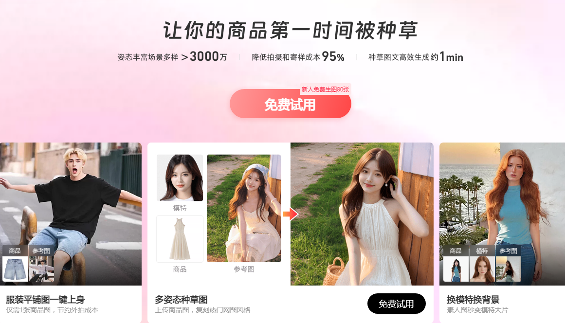 在艺术创作领域中,这款ai软件有极高热度与优势,描述文本快速生成图像,生成图像支持多种不同的风格,也可利用英文完成指令输入。很多电商从业者,为了增加商品的曝光度,需要让模特穿上服装或者展示商品,这款软件有虚拟模特功能,无需专业拍摄工具与影棚,一张静态图ai生成商品宣传图与模特图。还能自由生成并创造个人写真平台,轻松打造出具有艺术风格的写真大片。