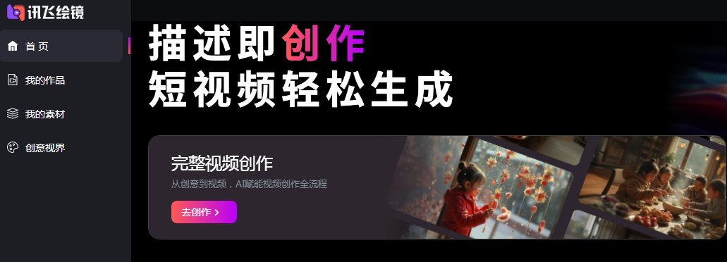 在生活中有各种炫酷的视频,逐渐出现在人们的眼前,一个好的视频背后都是有先进的ai视频制作工具的加持,才能展现出栩栩如生的视频画面。讯飞绘镜就是由科大讯飞所推出的视频制作软件,操作方式极其简单,用户只需输入关键词或将自己的创意灵感添加进去之后,即可看到高品质的视频。其中有多样化的模型辅助,用户可在其中挑选到符合自己要求的图片素材以及视频模板。