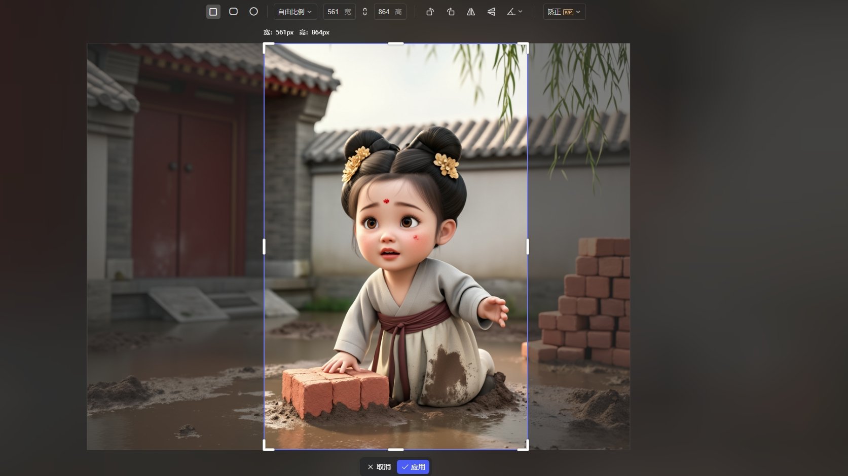 将图片调整为竖屏比例:选中图片后使用裁剪工具,调整至竖版9:16比例,使人物在画面中间即可。