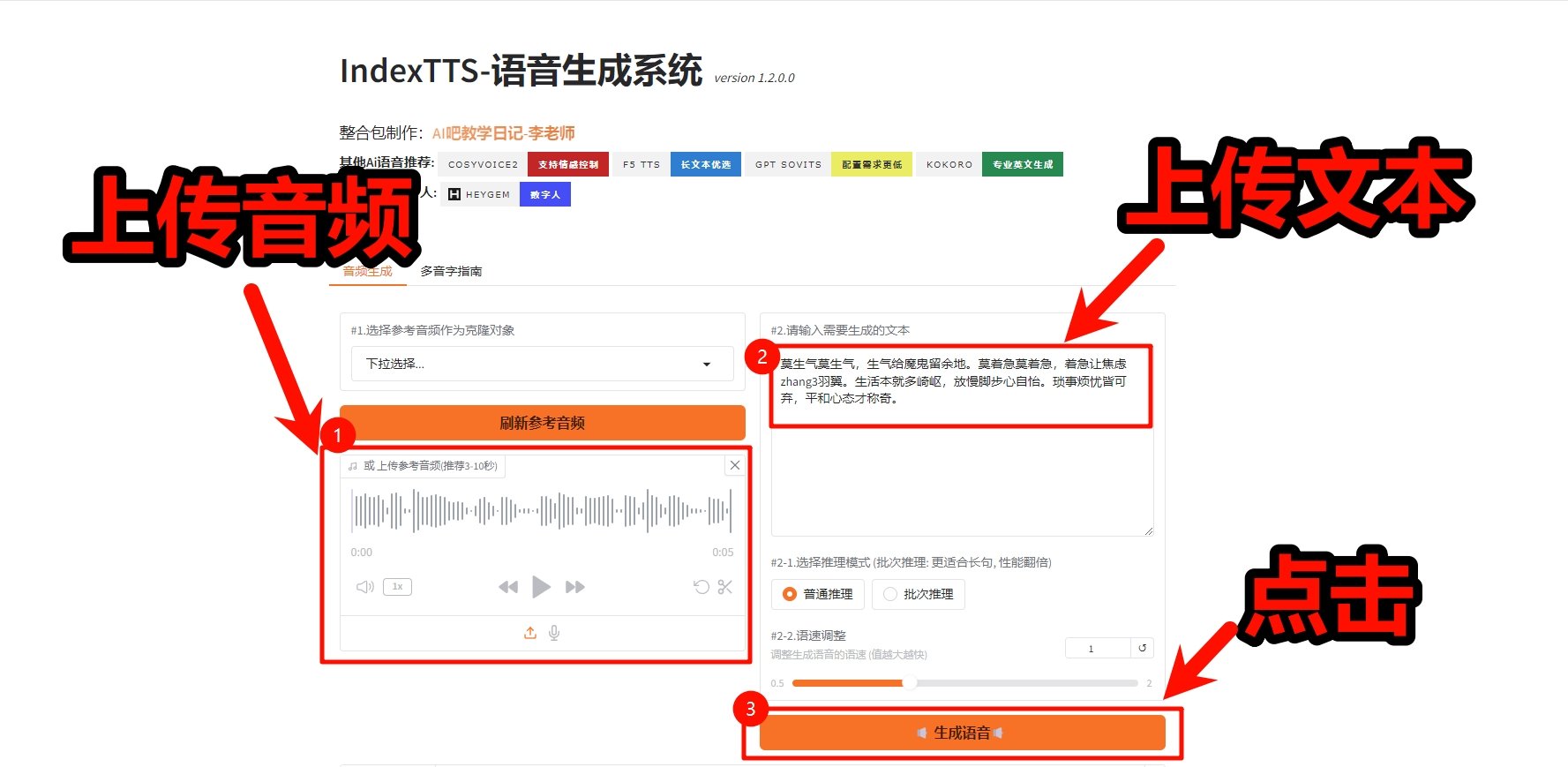 音频处理:通过IndexTTS声音克隆软件制作AI配音语音,让AI模仿目标音色。