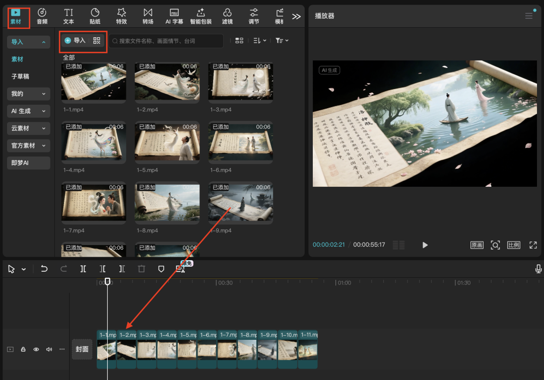 我们按以上两种方法,得到十个完整的视频,并保存下来