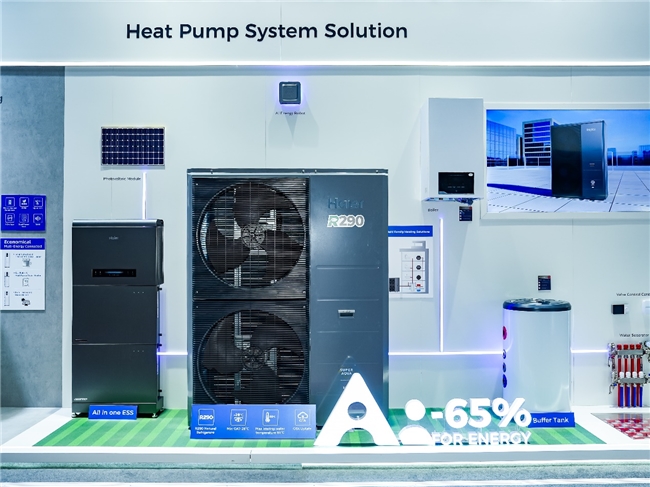 此外,面对欧盟日趋严格的F-Gas法规及低碳减排要求,海尔在广交会展出的冷媒技术体系展现了强劲的环保担当。其空气源热泵应用R290环保冷媒,VRF多联机产品全球应用R32制冷剂,全球首创的静压气悬浮水机也逐步推向海外市场,从源头上降低碳排放。