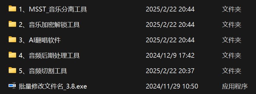 如果后面想要自己训练音色模型,那就把【4.音频后期处理工具】、【5.音频切割工具】这两个文件也解压并安装。