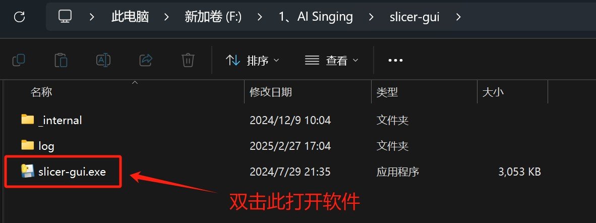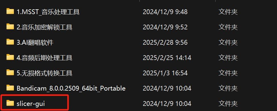当然了,切音频不一定非要是手切,也可以使用软件代替,我们找到【slicer-gui】文件夹,将其打开。