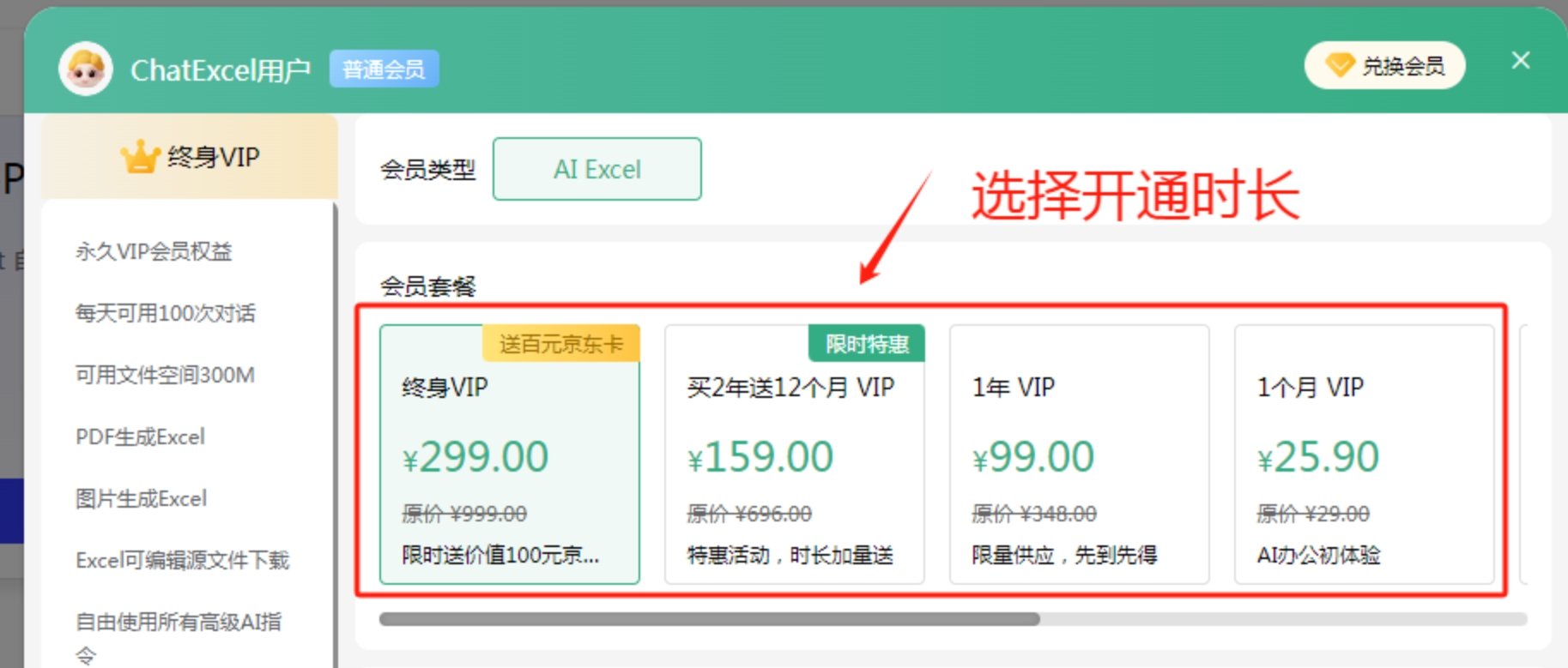 酷表会员按时长分为了终身、2年、1年和1个月,价格分别是299/159/99/25.9,大家可以根据需要购买。