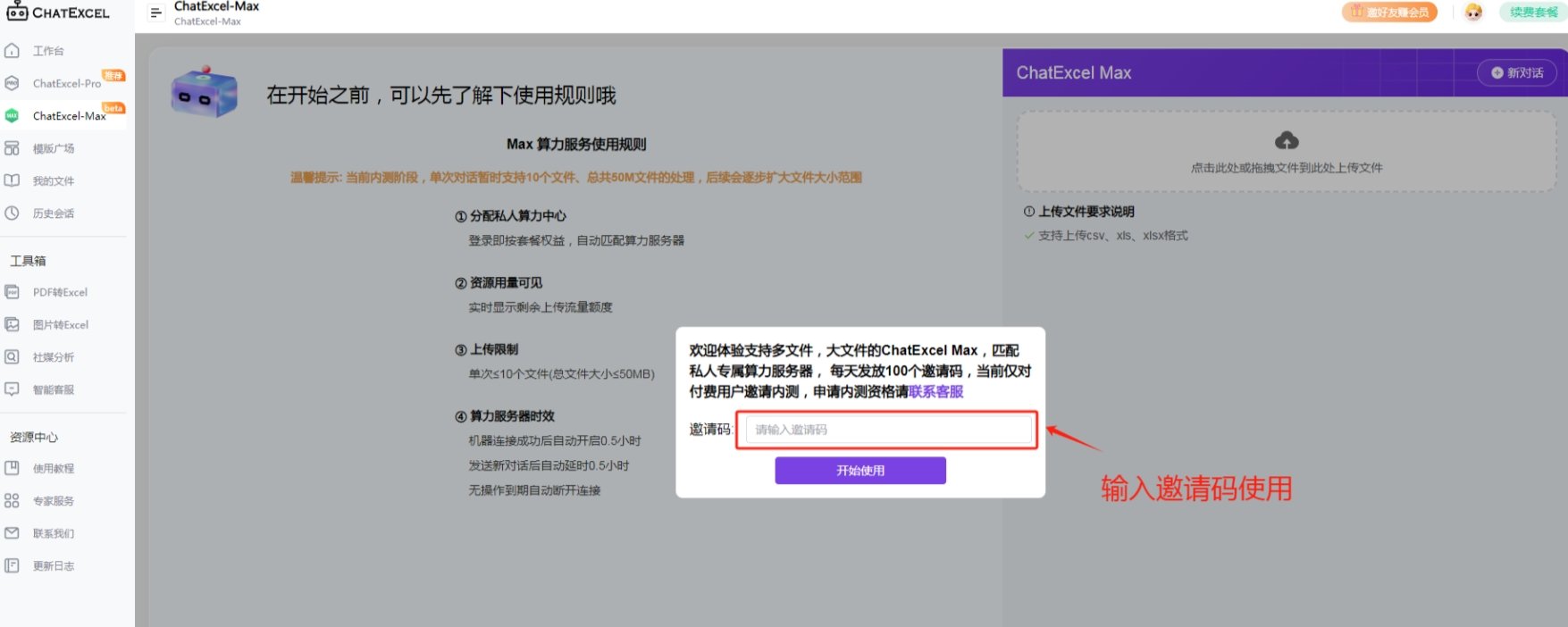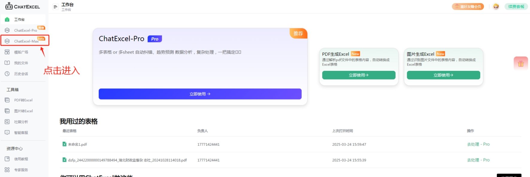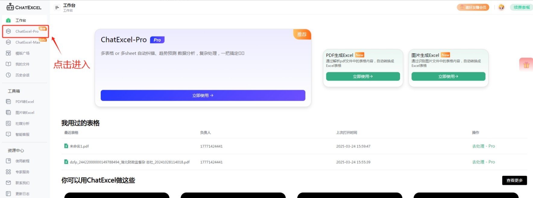 进入主页面后,点击左侧的ChatExcel-Pro进入。