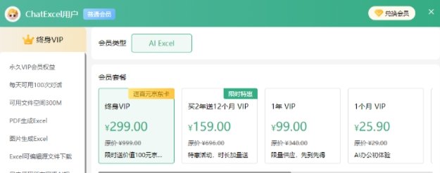 如果你需要长期使用酷表来制作表格,可以根据自己的使用需求选择合适的会员套餐。酷表的会员按使用时长分为终身会员、2年会员、1年会员和1个月会员,价格分别为299元、159元、99元和25.9元。