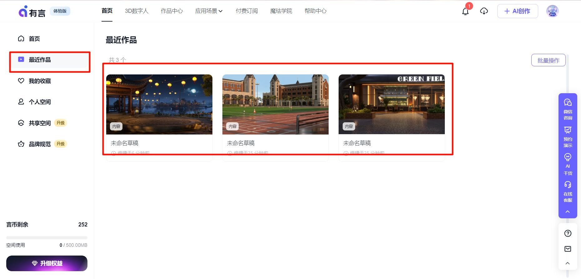 登陆有言ai,在首页右上角寻找到【3D数字人】,点击跳转。