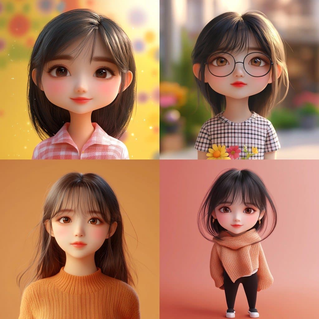 Pixar Studios present, depicting A cute girl, flat color gradient background, 3D render ,