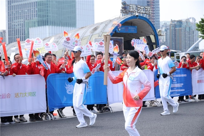 在广州站,广东联通党委书记、总经理周立松与其他火炬手一同完成了火炬传递。“我们传递的既是十五运的圣火、更是大湾区硬联通、软联通、心联通的圣火!”她表示,中国联通将以科技力量助力“智慧全运、通通出彩”。