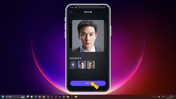 最后,选择右下角的演同款,按照要求,上传一张照片,点击立即生成。