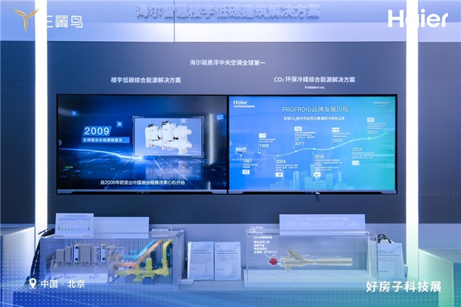 11月7日下午,由住房和城乡建设部科技与产业化发展中心联合央国企、科研院所等20余个共建单位,重点打造的“好房子科技展”在北京首钢园8号馆开幕。在未来科技展区,海尔智慧楼宇现场展示了磁悬浮中央空调低碳科技、CO₂环保冷媒零碳科技,二者均占据全球第一份额,收获行业专家认可。