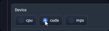2、继续向下滚动至”device”选项,选择”cuda”,用GPU来驱动算力。