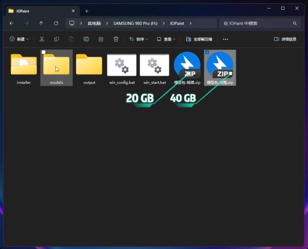 你也可以下载我提供的模型包,分20G的精简和40G的完整版本,请根据你的存储空间和需求选择。