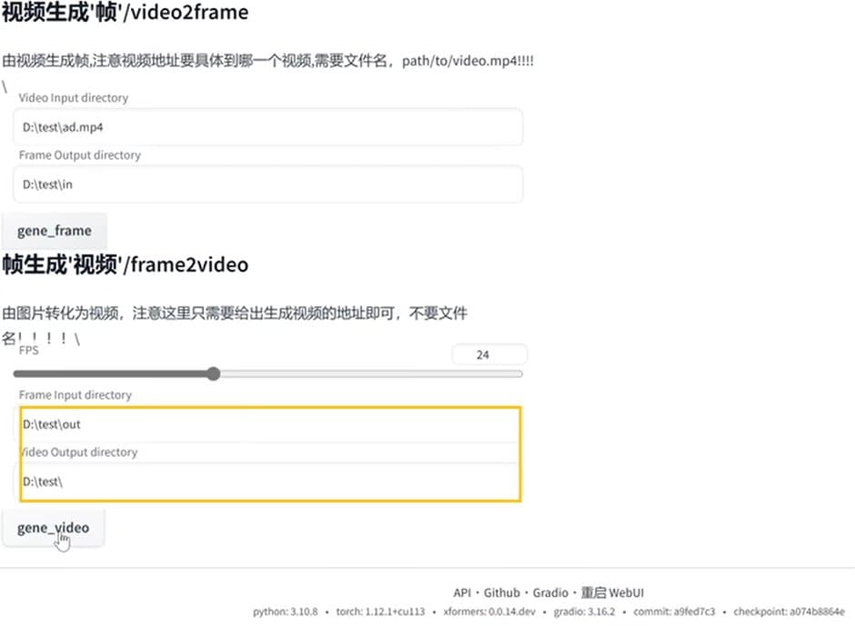 将图片的文件夹输入帧生成视频中的框中,然后填入将输出文件名填充。