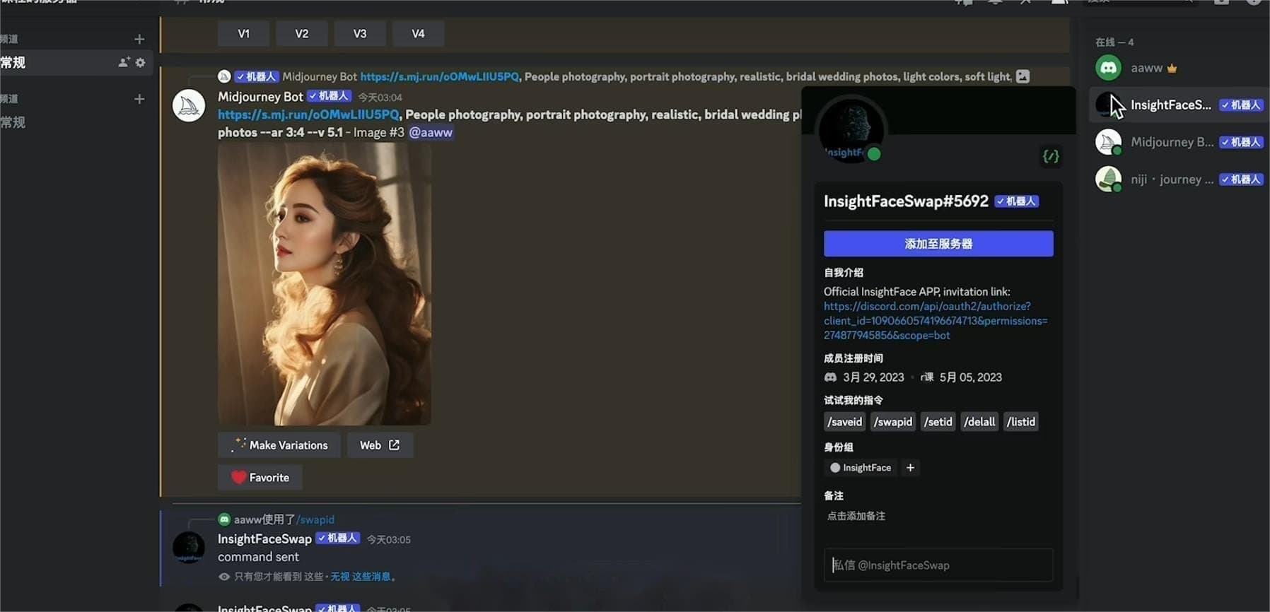将insight添加到自己的服务器,为midjourney换脸做准备