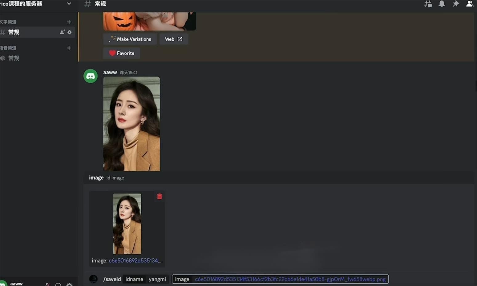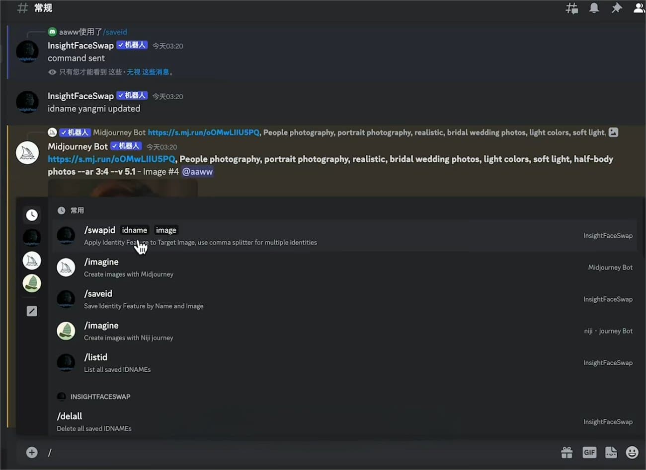 ·选择swapid后,将先前换脸图片名称输入idname后,被换脸图片链接输入后面的imagine框中