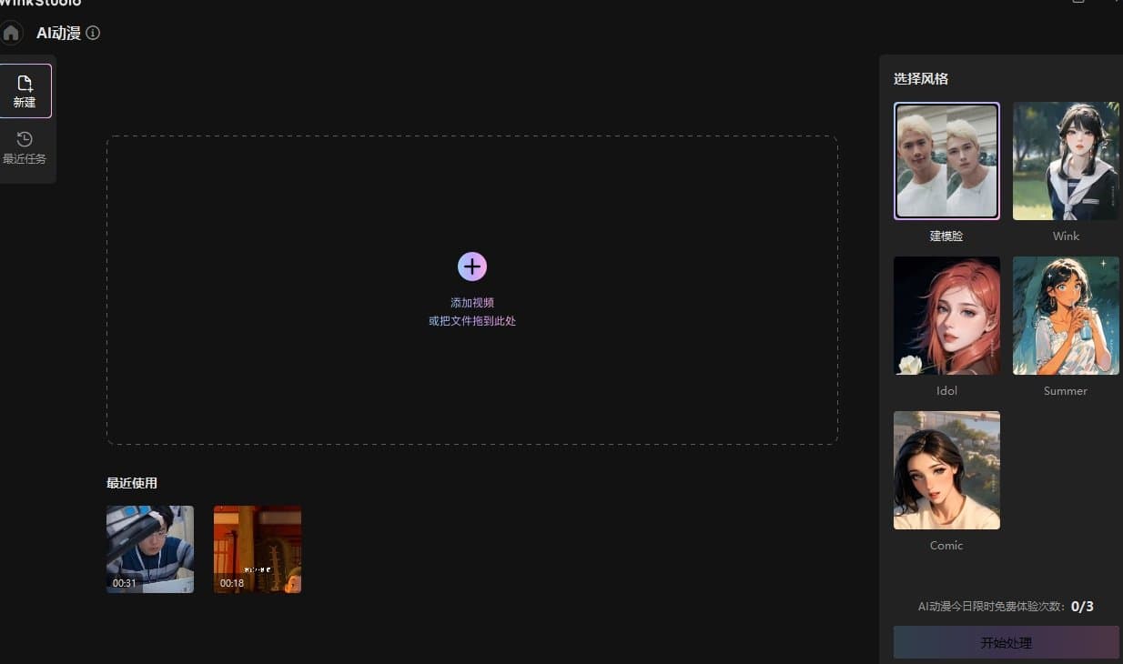 ·进入wink主界面后,点击AI工具箱中的AI动漫板块