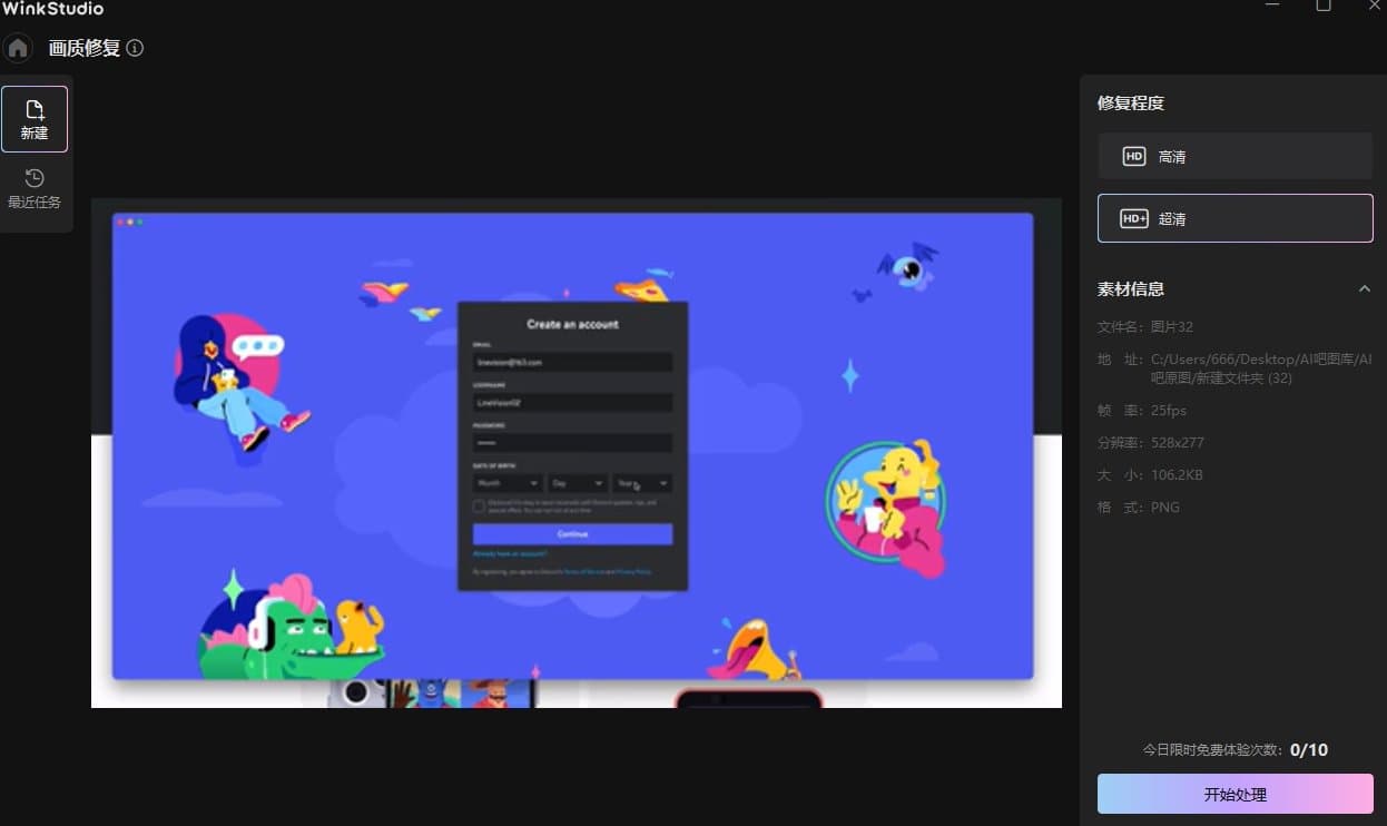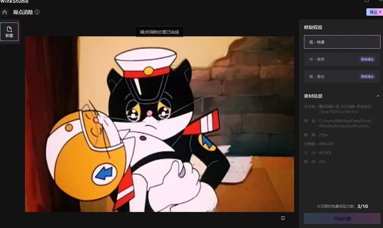 ·选择修复程度,并点击开始处理