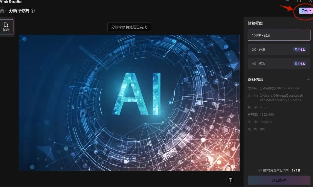 ·处理完成后点击导出,将图片导入本地