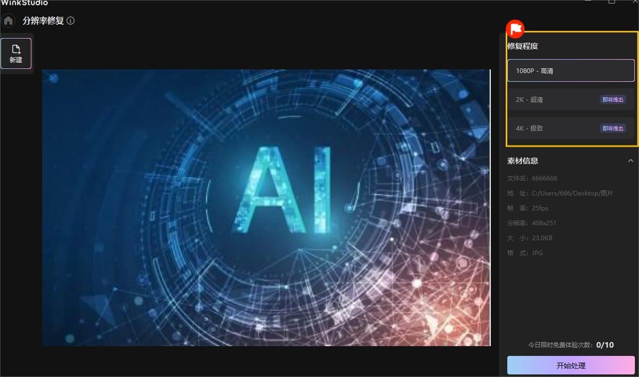 ·进入wink页面,点击分辨率修复,进入页面