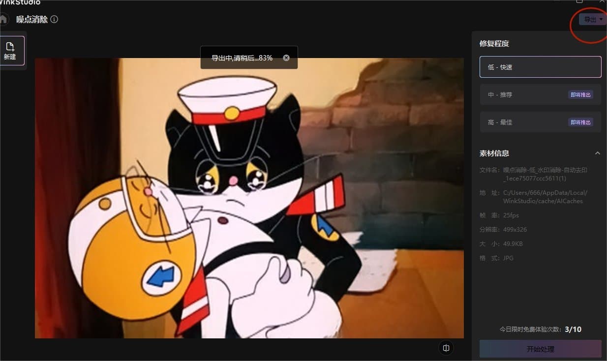 ·处理完成后,点击导出