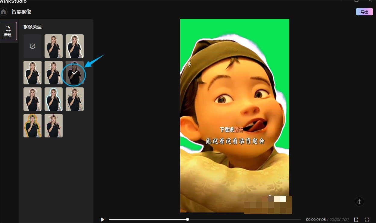 目前wink智能抠像提供十种不同的抠像类型,小编接下来就来演示一下比较常见的四种抠图类型。