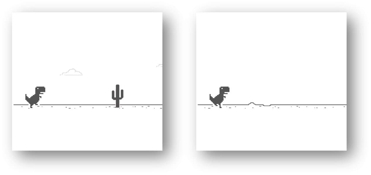 到现在,AI涉略的不仅仅是棋类游戏。像是超级马里奥、王者荣耀这种游戏,AI也能有比较好的表现。今天我们就来用一个实际的例子讨论AI自动玩游戏这一话题,本文会用非常简单的机器学习算法让AI自动玩Google小恐龙游戏。