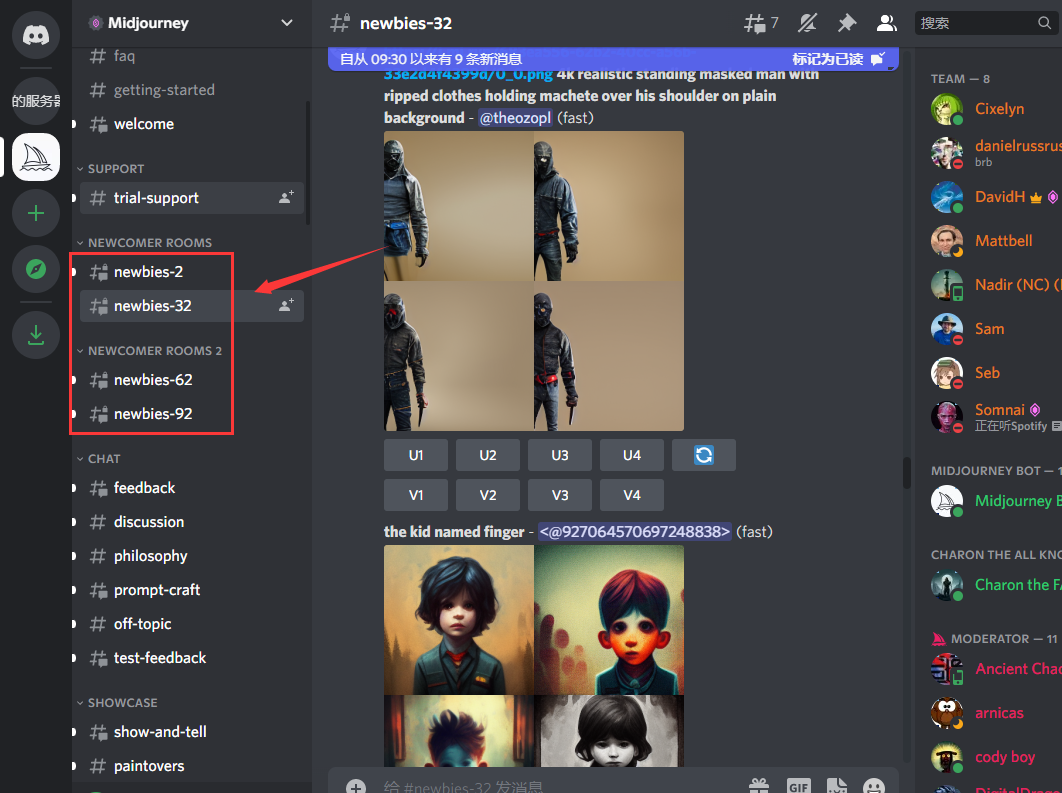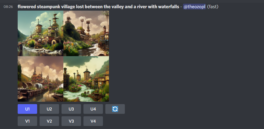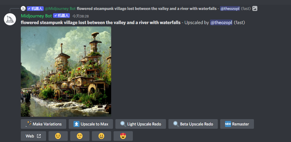 如果选择V1-V4,机器人就会根据你选择的图片基础上在重新生成4张图片。