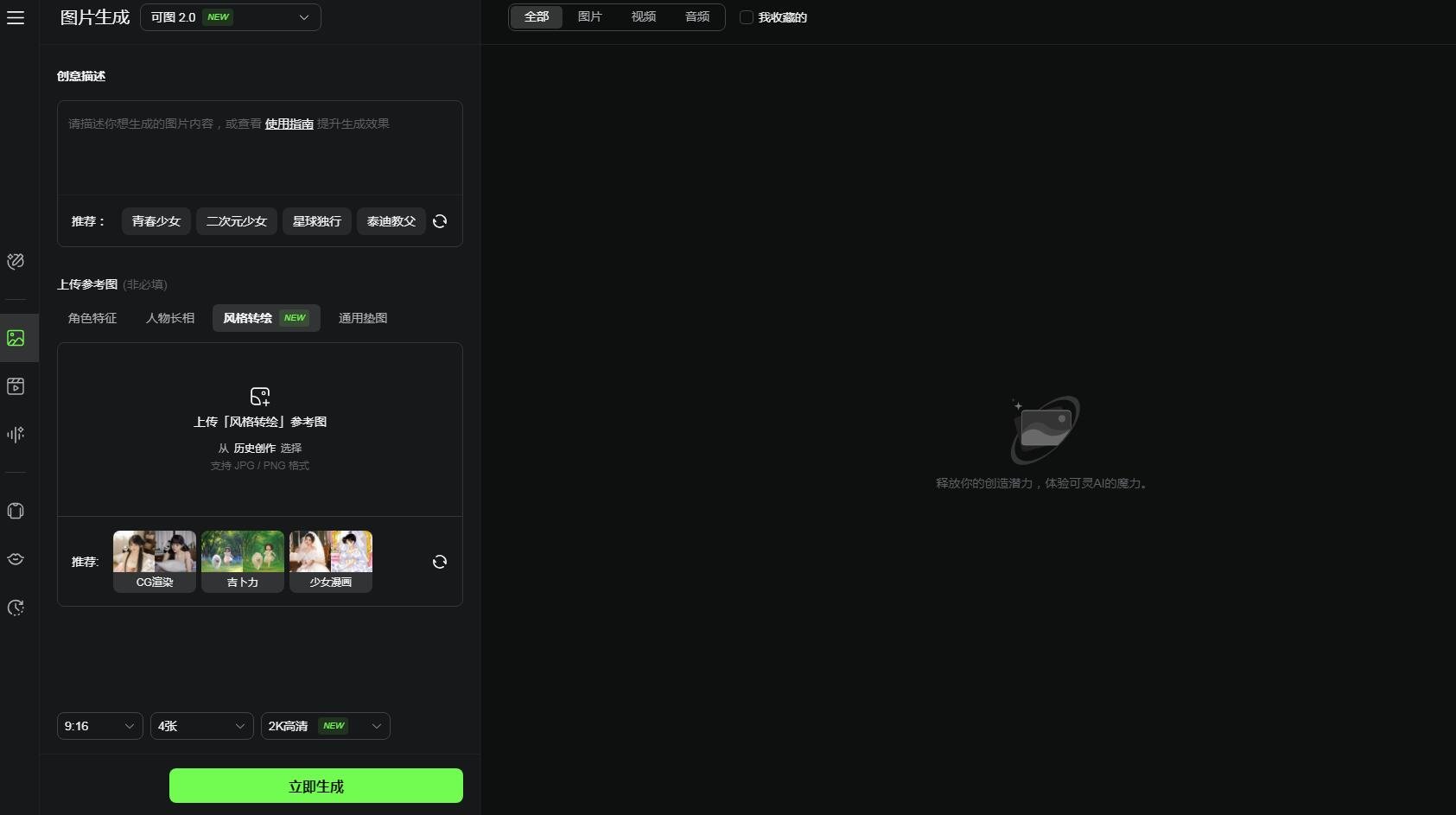 此工具,除了满足我们想要生成商品图的需求,更拥有强大的文生图技术,以及创作功能。还有超强的文字情感捕捉能力,以及语言的洞察能力。只需输入自己要求的图片内容,就可生成高品质的。