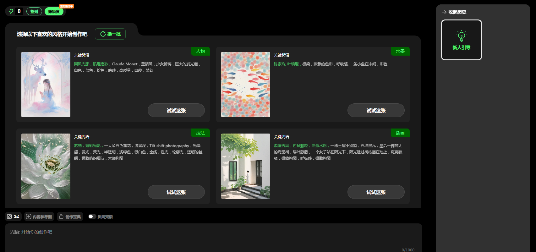智能图像生成软件,操作风格任意选择提供独有东方韵味的绘画作品,生成之后可在创作工具中进行二次创作,比如图像无损放大,添加特效文字等。