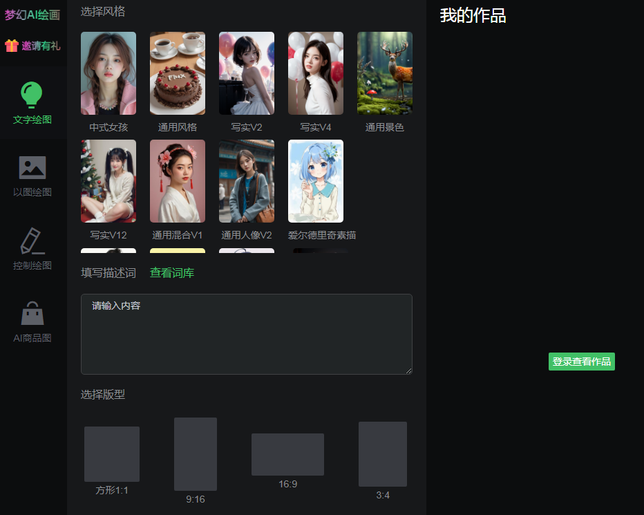 具有自由度极高的绘画ai生成工具,让创作充满无限可能。多样化风格任意选择,不同艺术作品应有尽有,包括油画、卡通、素描,满足不同审美需求,所生成相应的艺术作品可二次创作。