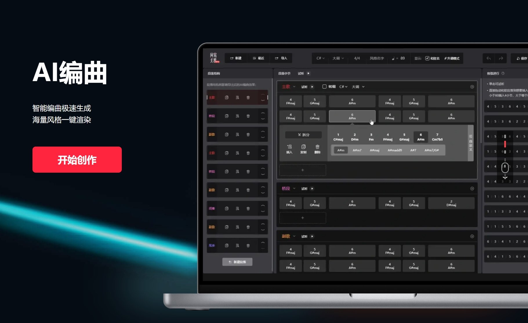它工作基础应用了先进的乐曲计算技术,其评分已经是行业内的较为靠前的水准。该软件的音乐创作功能,通过输入相应文本后,自动识别旁白并选择合适的音色,而且通过智能识别,来添加相关背景音乐和音效,最后生成音频。