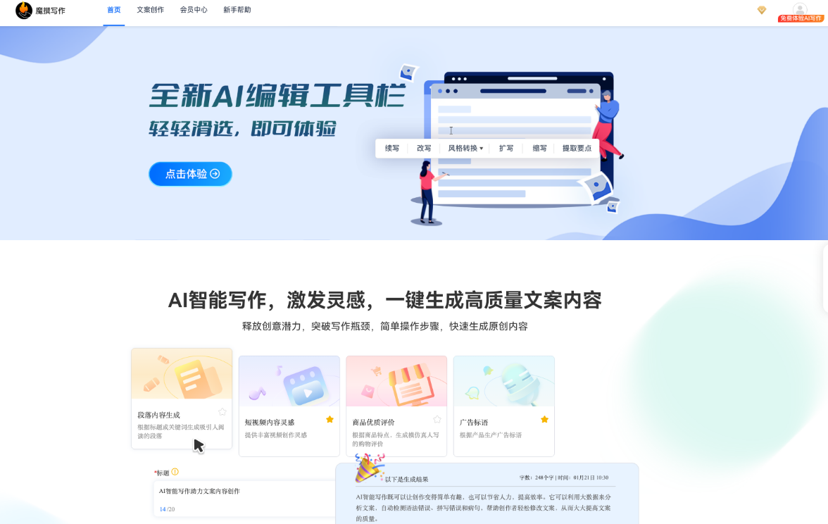 全能又高效的写作工具一键批量快速生成专为智能写作所涉及,文章报告,创意文案都能提供个性化写作辅助,有效提升写作效率,关于各种创作都能帮你游刃有余的应对。