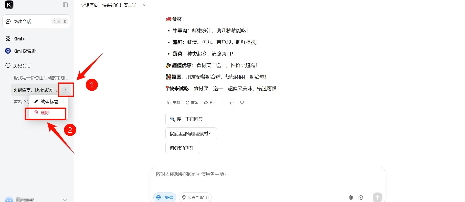 如果大家不想保留聊天记录,也可主动将它删除,这样聊天记录就不会再出现在历史会话里了。