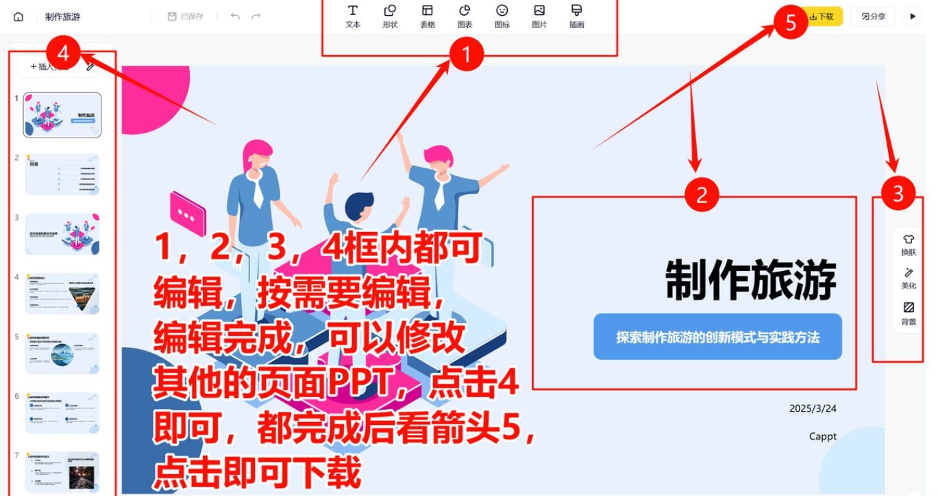 生成ppt之后,需要手动修改PPT。修改完成之后,直接下载。