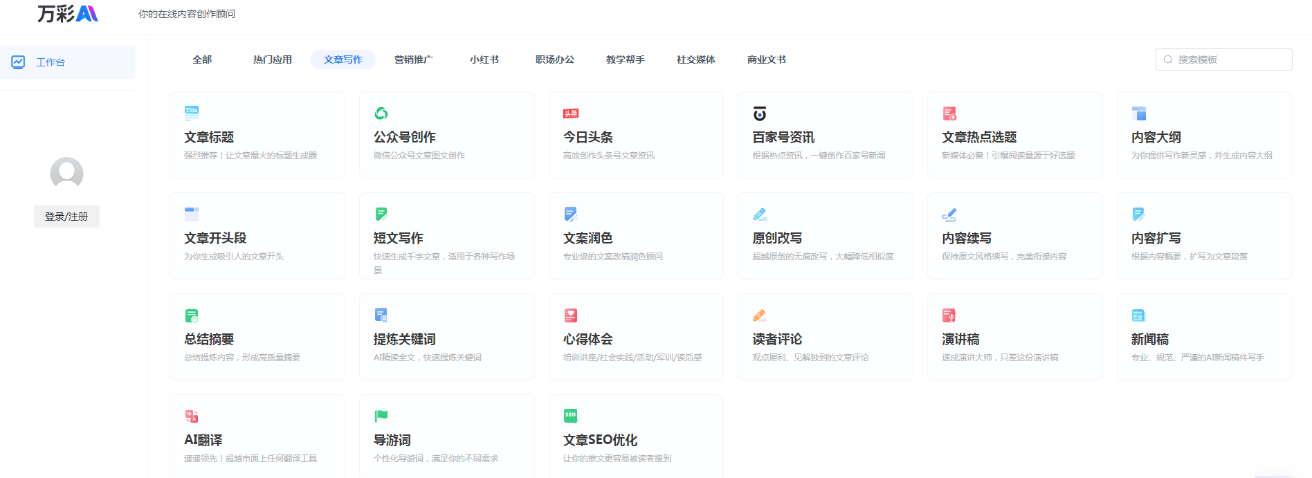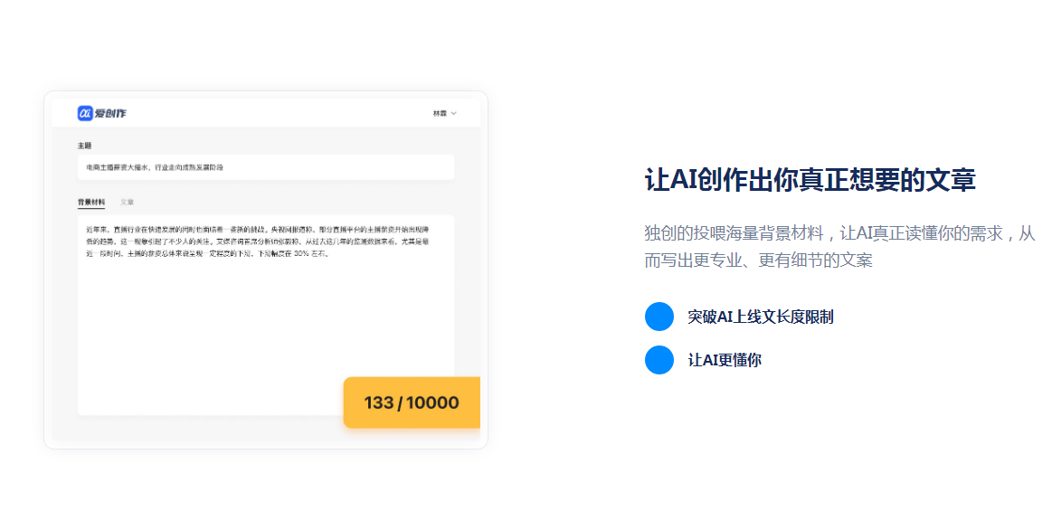 作为功能强大的一款ai写作工具,利用了如今特别先进的技术进行创作,比如语音识别以及机器翻译等,在用户创作文章时能保证高效以及文章的质量。其中人们特别喜欢的功能有智能写作、语音转文字以及多语言翻译等。如果在写文章时,您毫无头绪,想要撰写出高品质的文章,那么就可利用智能写作,只要输入简单的关键词就能够快速生成结构清晰明了的文章内容还支持了多种不同的格式,比如合同以及相关的报告等。