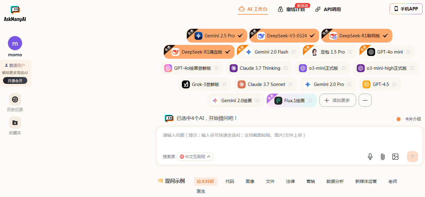 涵盖了非常全面的工具内容,也是属于顶尖的ai大模型,此软件能给更多用户提供特别便捷的ai工具,可支持多个ai同时回答问题,用户只要在对话框当中,输入自己想询问的内容,就可以快速并准确地找到最佳的答案。这里还支持了图生文,文生图等多种功能,也适用于各大领域中,内置超过10万多个ai使用的工具,比如自然语言处理以及文本写作等等。尤其很多学生在写论文或者知识点解析时,都可轻松使用。