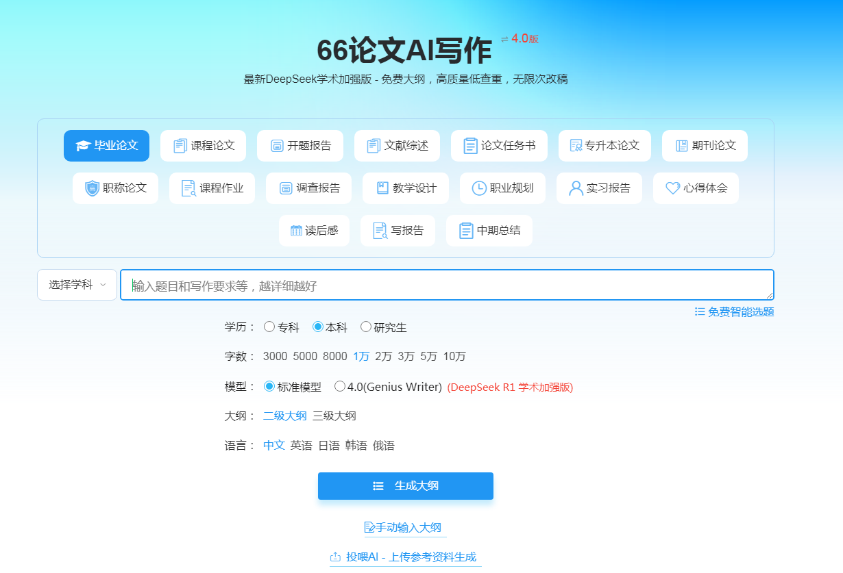 对于很多学生来说,在毕业前都要写特别专业的毕业论文,但是很多学生总是会创作出千篇一律的毕业论文,并没有任何的亮点和吸引力,因此就可以使用这款ai软件在基础的写作模型之上还进行了升级,融入了学术理念,还有很多免费的大纲,为更多用户提供了便捷的条件,可以在多样化的大纲当中选择到符合自己要求的内容。