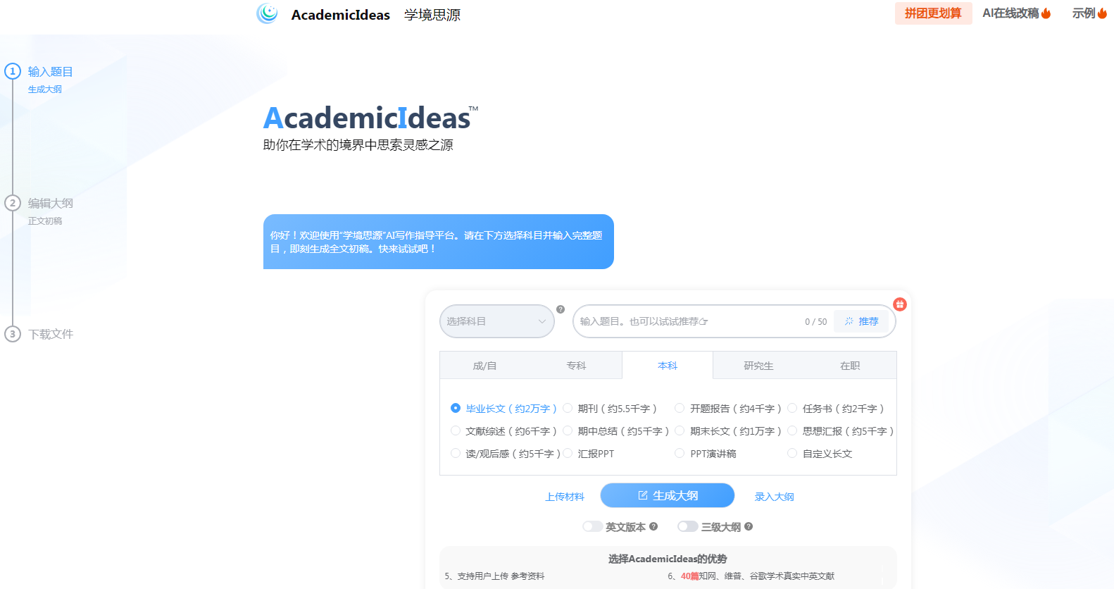 凭借着相当先进又非常专业的学术级别内容生成精准定位,快速高速生成高质量学士论文以及行业报告,即便较长的文章也全部支持。生成的内容逻辑连贯,学术知识展现性能更强。高校生成长文本轻松突破2000字单次输出,一次性生成上万字甚至几万字的论文,只要用户输入相关的关键词系统便会自动生成构架,之后用户可自由插入表格以及公式。