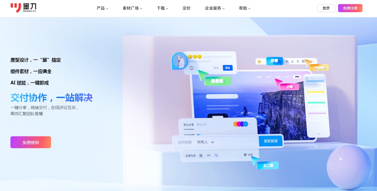 作为墨刀最新推出的一款ai智能助手,提供了高效的创作方式以及独特的创意,能激发所有用户的创造力。其中强大的功能还能提高产品的设计效率,也帮助用户激发了创作的灵感。当您在制作头像时没有任何灵感,那么就可以将自己所想的形象或整体的大纲输入进去,只需一个指令,就可以设计出多种不同的设计方案,您可从中随意挑选在短短十秒中之内就可快速生成。